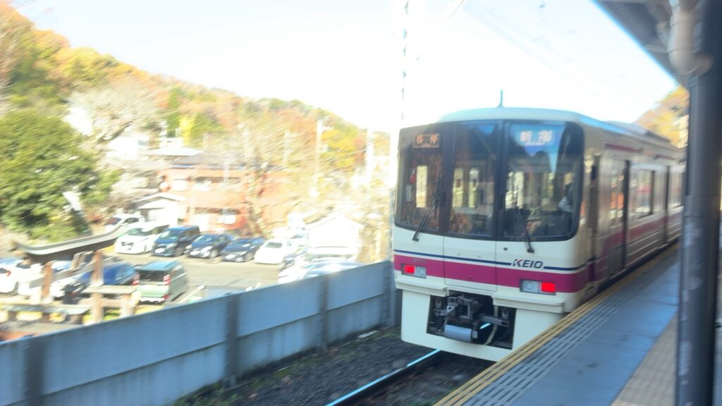 京王特急は昔はもう少し速かったそうですが、現在は停車駅が増えたこともあり、55分程度かかります。特急というより実質「急行」のような位置づけで、朝晩には通勤急行という名称の列車もあるくらいです。